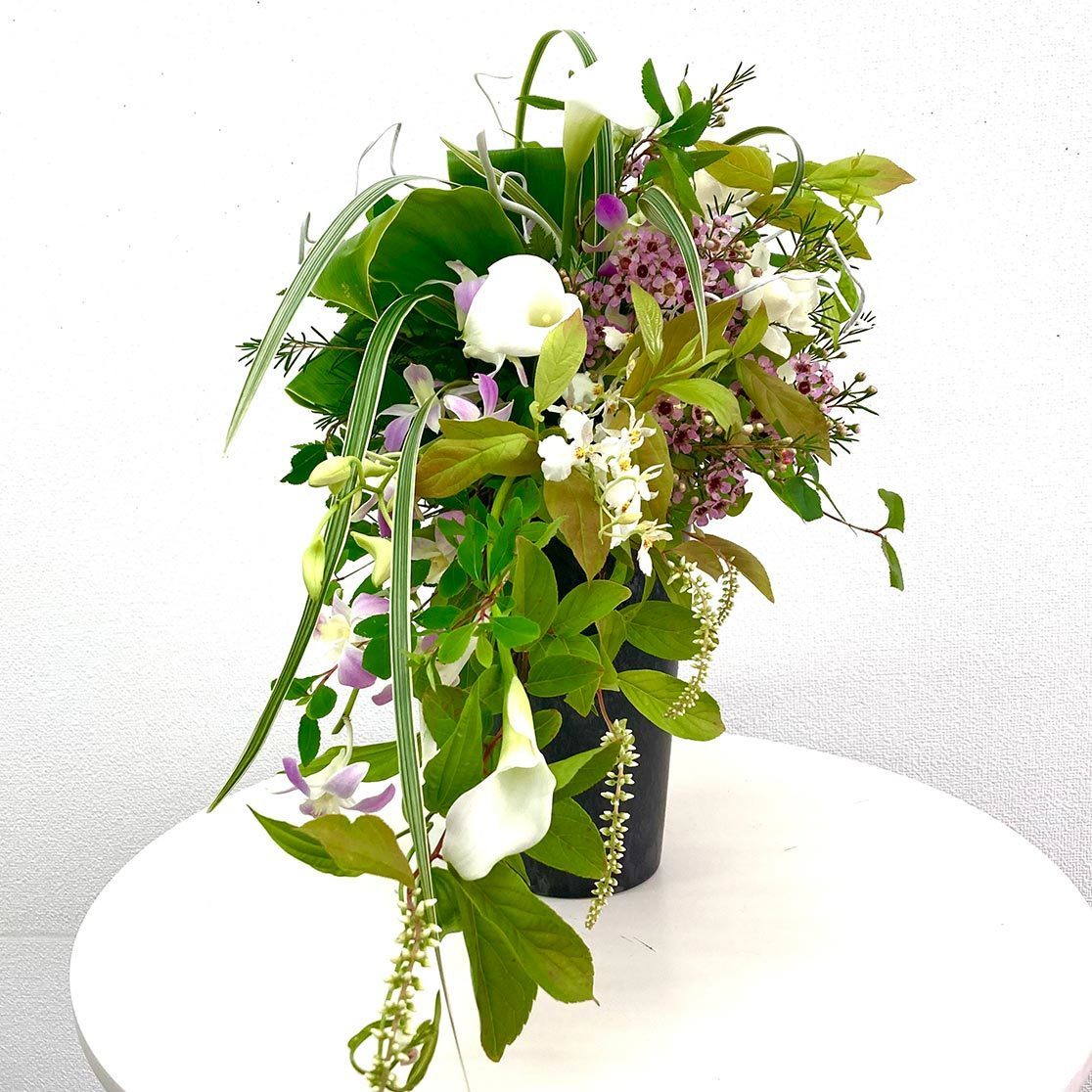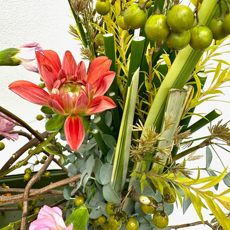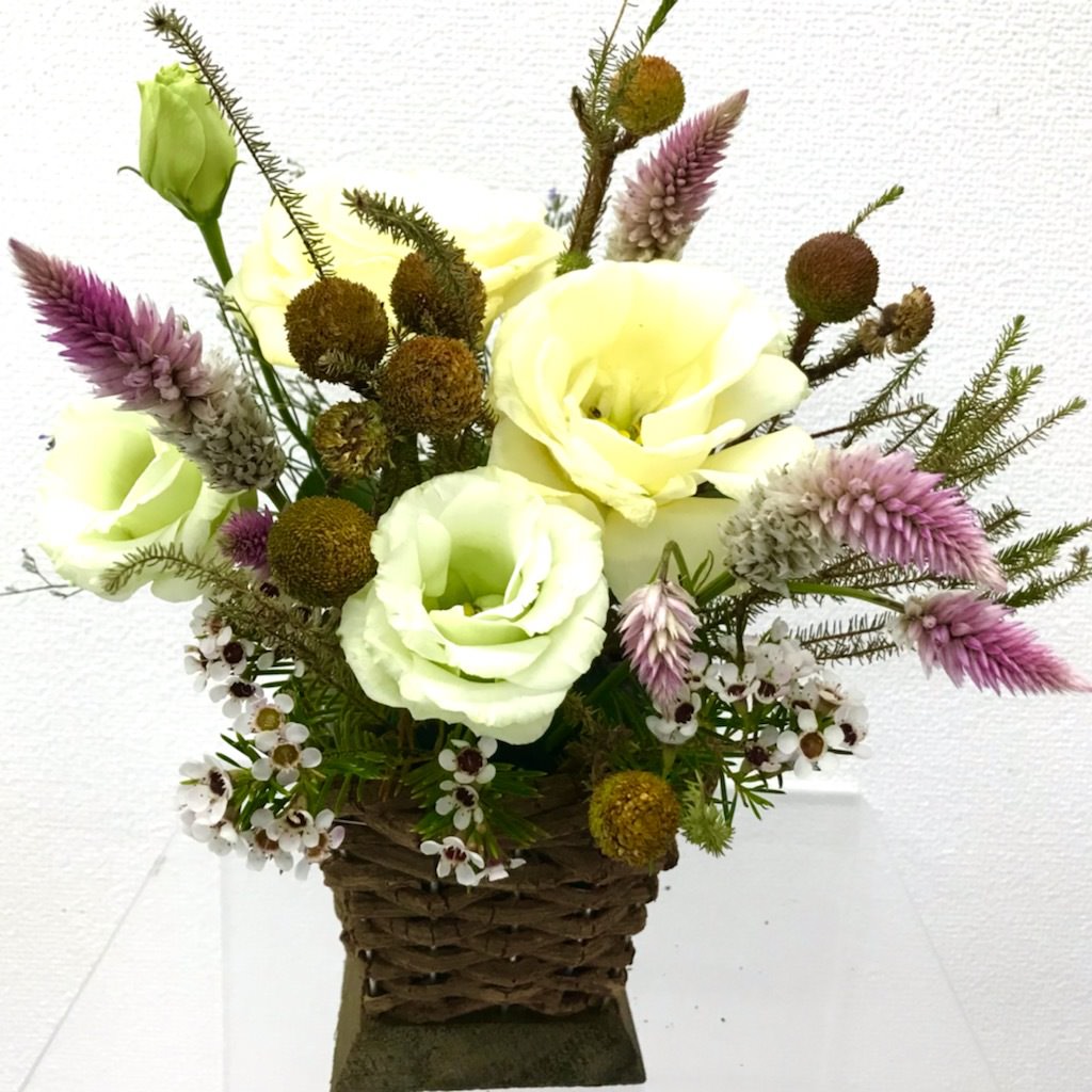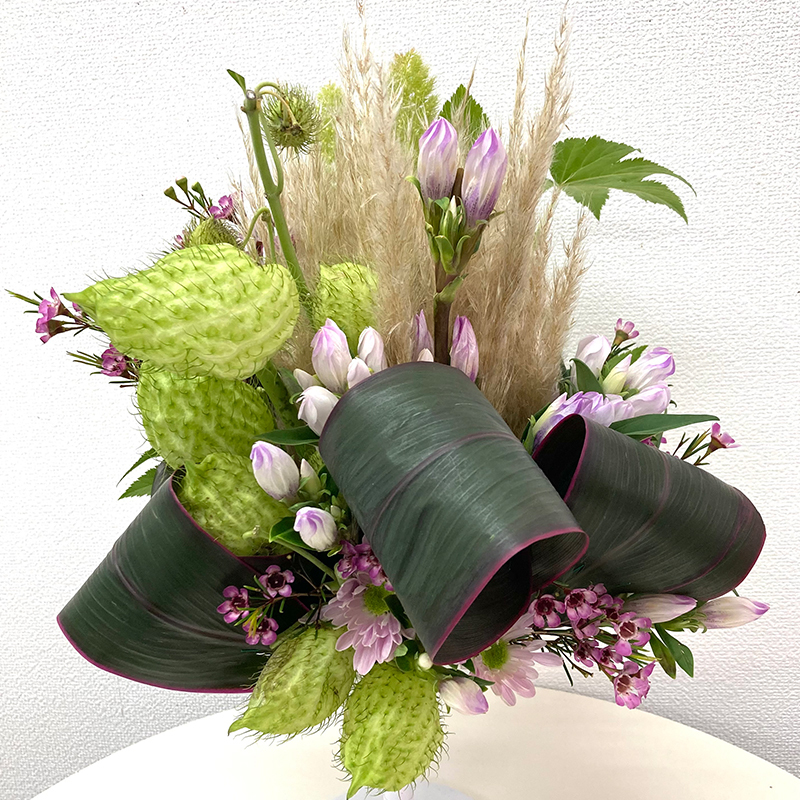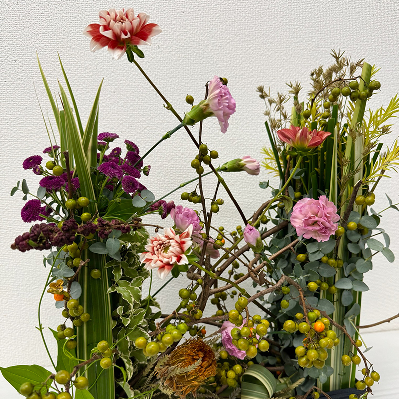 季節の花材でいろいろなアレンジが楽しめます