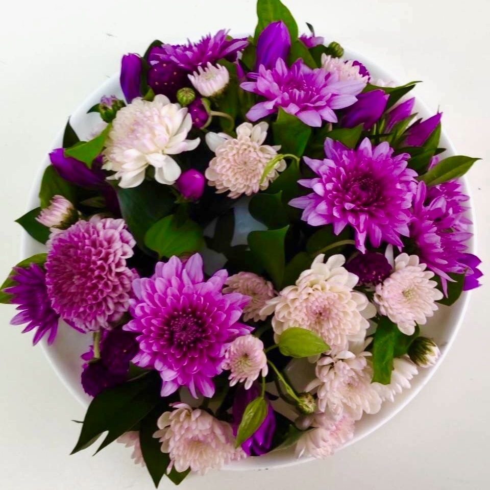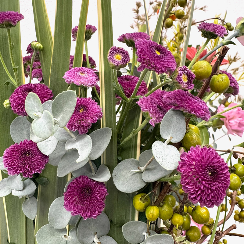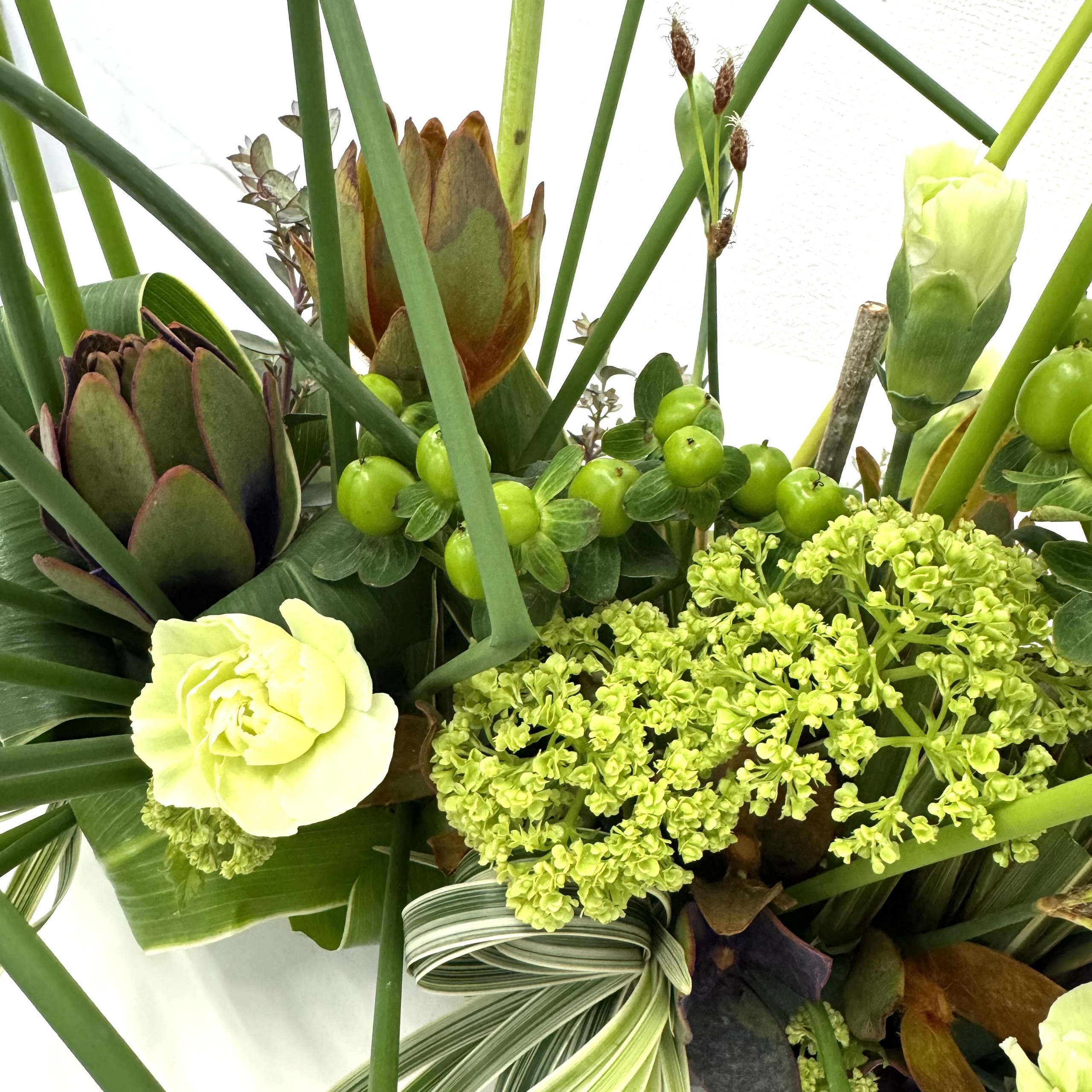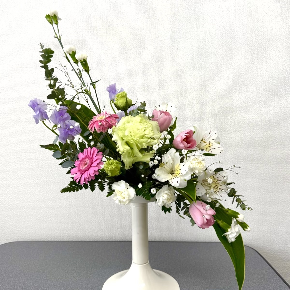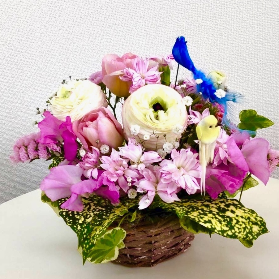 季節の花材でいろいろなアレンジが楽しめます
